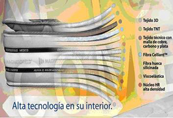 Magnetofield combina la más alta tecnología en su interior, donde encontramos la ergonomía de la Viscoelástica, perfecta por su adaptación a cada persona. Bandas magnéticas mineralizadas, especialmente diseñadas para la inmanoterapia, que tiene la función de crear un campo magnético y absorber la energía estática que hemos ido acumulando durante el día, dejando nuestro cuerpo exento de energía negativa.